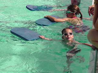 Not only was it awesome to see Evan embrace/enjoy the competition, it was awesome to see how he could actually *compete* with quite a few of the 10 year-olds. Seeing as how he's only 7 years old and he's competing in a 10-under age group, you can imagine that the odds are against him finishing on the podium. That being said, Evan held his own in the 50 meter breaststroke. He finished 9th overall out of 25 competitors AND earned a qualifying time for the state meet. Just to give you an idea of how close he was to finishing better than 9th place...